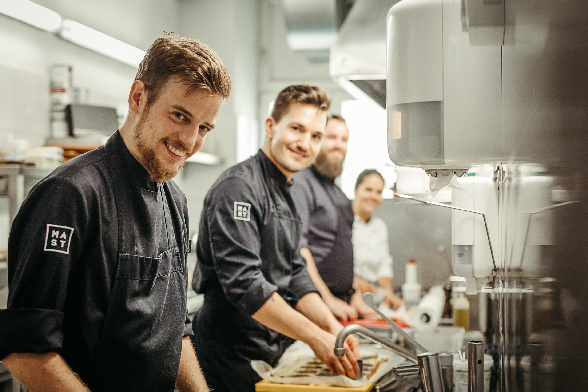 Dass die beiden mit dieser klaren konzeptionellen Kante so erfolgreich sein würden, dass man über sie in brasilianischen oder israelischen Food-Magazinen berichtet und Wien-Besucher, die zuvor bei Sterneköchen wie Juan Amador und Heinz Reitbauer speisten als letzten Stop auf ihrer Foodie-Tour im MAST einen Tisch reservieren, hätten sie sich vor fünf Jahren nicht ausdenken können. Hinter dem Duo liegt einer der erfolgreichsten Sommer, an die sich erinnern könnten. 1200 Gäste essen und trinken im Schnitt monatlich im MAST, der Pro-Kopf-Umsatz liegt abends bei 80 Euro. „Als wir aufgesperrt haben, haben wir mittags noch mit 14 Euro pro Gast, abends mit 36 gerechnet!“, lacht Steve. „Und jetzt passiert es schon mal, dass an einem Abend unter der Woche Flaschen um 300 oder 400 Euro rausgehen.“