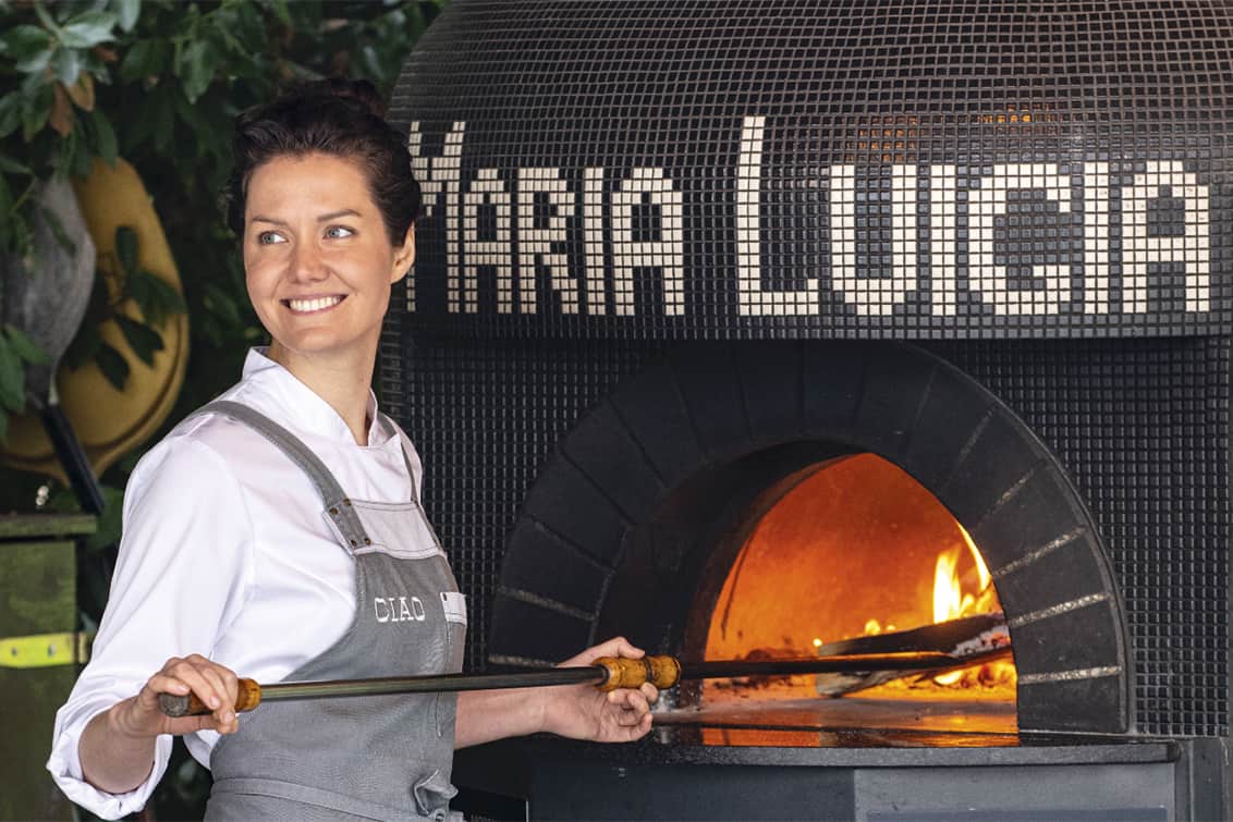 Dieser freie Geist schwebt auch über de Casa Maria Luigia. Bottura und seine Frau ersteigerten den zerlemperten, verlassenen Bauernhof 2017. Was sie damit tun sollten? Erstmal unklar. „Aber dann reifte dieser Gedanke in uns, die Menschen dazu einzuladen, wieder intensiver im Hier und Jetzt zu leben, und mit uns, anderen Gästen und mit dem Essen zu interagieren“, sagt Rosval. Also wurde aus dem Bauernhof ein Gästehaus und ein Ort, an dem Kulinarik, Kunst, Design, die Emilia-Romagna, Natur, Musik und die Geschichte der Osteria Francescana miteinander verschmelzen. Rosvals stark von modenesischen und emilianischen Traditionen beeinflusstes, kulinarisches Konzept ebenda beruht im Wesentlichen auf drei Säulen – Frühstück, Sonntagsbrunch und abendliches Osteria Francescana-Tasting Menu. In allen Bereichen spielt das Kochen über offenem Feuer ein wesentliche Rolle, Rosval nutzt Holzofen, Räucherofen und Grill. „Ich bin Kanadierin, ohne Ahornsirup und Holzfeuer geht bei mir gar nichts!“, betont sie. Das Frühstücksangebot ist eine zeitgemäß in Szene gesetzte Hommage an die bäuerlichen Frühstückstraditionen der Region. Es gibt Gnocco Fritto ein Brot aus Mehl, Wasser und Schmalz, geröstete Cotechino-Wurst, Zwiebelomelett, Spinattorte. Zum Lunch rücken Rosval und ihr Team saisonales Gemüse aus dem eigenen Garten und regionstypische Produkte in den Fokus, und an fünf Abenden die Woche dreht sich alles um neun ikonische Gerichte der Osteria Francescana – Stichwort „Oops! I dropped the lemon tarte“ oder „The crunchy part oft the lasagna“ –, die in der Osteria selbst nicht und nie mehr serviert werden.