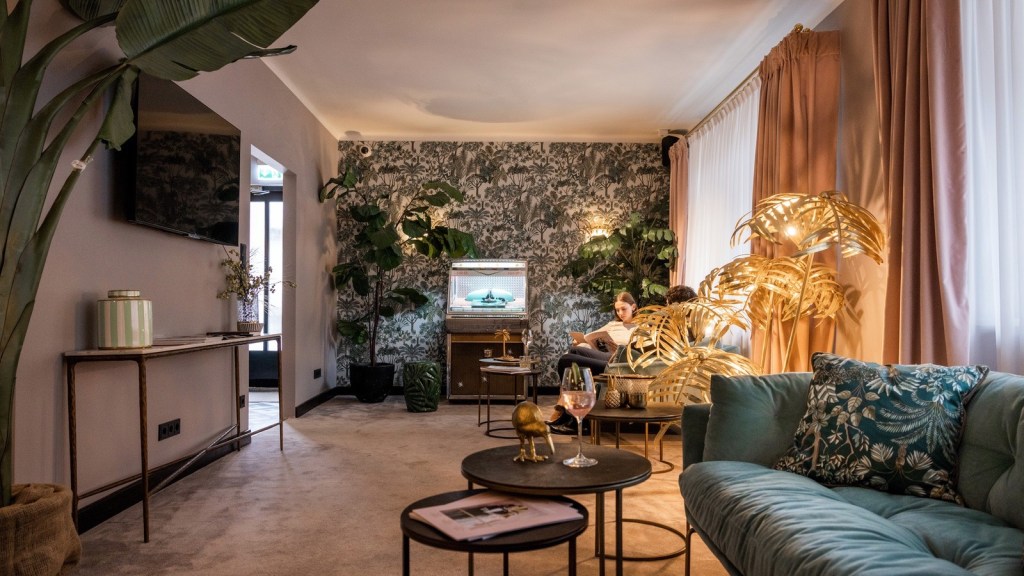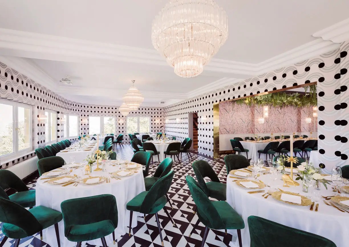 Das Fernblick steht in St. Corona am Wechsel und ist auch so ein Haus, das seine besten Zeiten hinter sich hatte. Seit dem Abbau der Skilifte 2011 ist St. Corona ein – wohlwollend formuliert – recht verschlafenes Örtchen. Zumindest war es das, bis Niederer und Wessely sich 2017 wieder einmal spontan verliebten. Beim ersten Blick auf das ehemalige Ausflugsgasthaus habe er an einen Scherz seines Partners gedacht, sagt Michael Niederer. Der 700 Jahre alte Lindenbaum und der Ausblick hätten dann aber dafür gesorgt, dass aus dem Gasthaus in zwei Jahren Bauzeit ein „totaler Happy Place“ entstand. Tatsächlich ist das als Hochzeits- und Tagungslocation konzipierte Haus – das während der Corona-Krise als „Buena Vista Weekend Club“ auch für exklusive Freundesrunden mit Cocktails, Dinner und Dj-Vibes öffnete – mit seinen 21 Zimmern ein schriller, schräger, exzentrischer, glamouröser und stilvoller Ort im Mid-Century-Schick, den es so in Österreich nur einmal gibt. Wer keine Freud an Chichi hat, ist hier falsch. Her regieren Samt und Plüsch, Bleikristall, Stofftapeten mit Paradiesvogel-Motiv und goldene Platzteller, es gibt eine spektakuläre Felsenbar, einen Pool, eine Außenbar mit Blick auf den Springbrunnen und einen hoteleigenen Concept Store. Jeden Sonntag von 12 bis 19 Uhr ist das Fernblick außerdem als gehobenes Gasthaus geöffnet, „damit verlieren wir eher Geld, aber es macht uns eine Riesenfreude, die Gäste sind glücklich, die Mitarbeiter auch, was willst du mehr.“