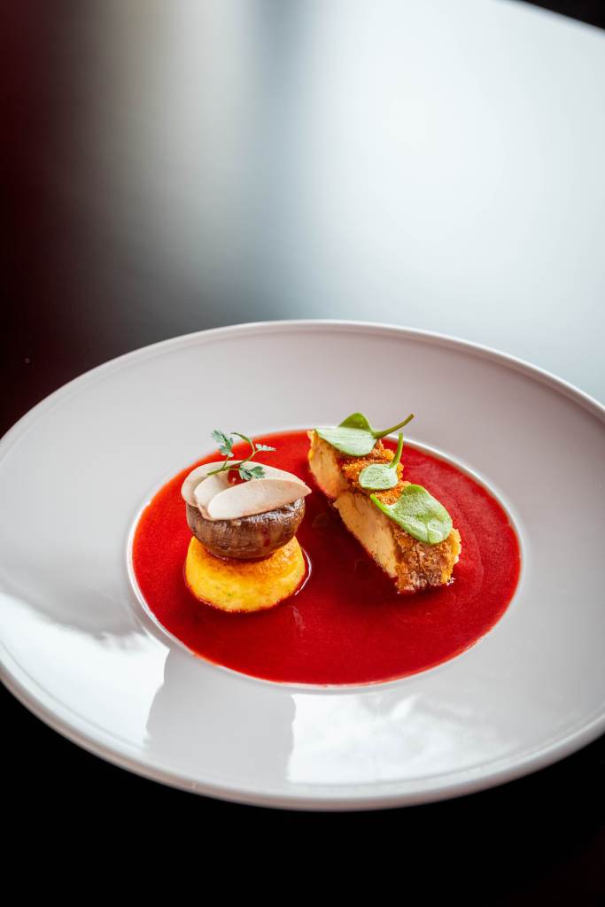 Das klingt bescheiden, tatsächlich kokettiert Glantschnig an dieser Stelle ein wenig mit seinem Ehrgeiz und seiner Kompetenz. Er ist nämlich in dem, was er tut, schon ziemlich gut. Allen voran im Kochen. Und 2024 möchte er in dem rot vertäfelten Raum, in dem im Sommer sein Chef’s Table namens Rouge Noir einziehen wird, beweisen, dass er darin michelinsternwürdig gut ist. Mindestens einen Stern will er gemeinsam mit seinem zukünftigen Sparringpartner David Traun holen. „In den nächsten drei, vier Jahren sollen es aber definitiv zwei werden. Das wird eine Challenge.“